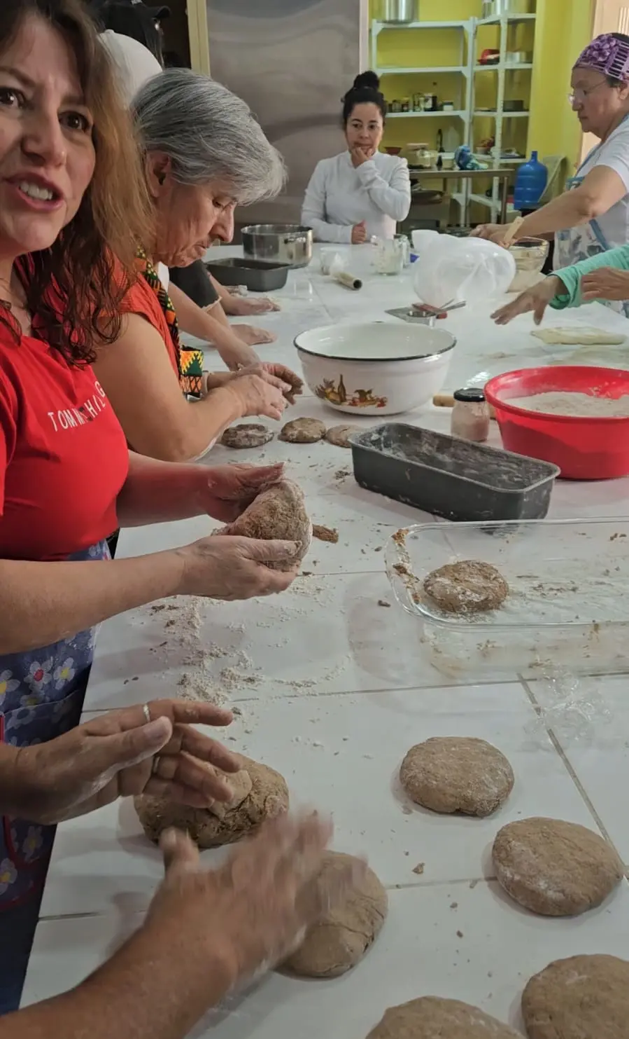 Durante este taller, exploramos alternativas deliciosas y nutritivas al pan convencional, utilizando ingredientes reales, funcionales y cargados de beneficios para la salud. Aprendimos a preparar panes y masas saludables como el pan de garbanzo, la tradicional y poderosa masa madre, el versátil pan pita, así como una mayonesa saludable libre de aditivos. Además, profundizamos en el fascinante mundo de los probióticos, entendiendo su importancia para la salud intestinal y su integración natural en la panadería fermentada.